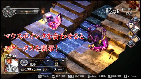 ステージにてマウスポインタをキャラクターに合わせると、そのキャラクターのステータスを表示します。