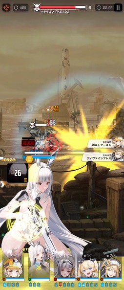 スキル2の「ラビットツインズB」は,フルバーストタイムが発動したとき,味方全体の最大装弾数を上昇(10秒間)させ,同時に弾丸をチャージする(と思われる)パッシブスキルとなる。フルバーストタイムとリロードのタイミングがかぶり,その時間がもったいないといったことは攻略中によくあるが,それをある程度避けられるのかもしれない。