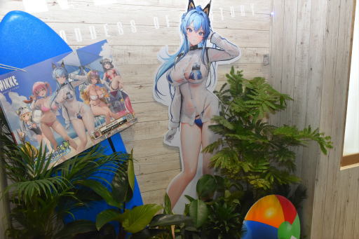 南ホール3・4にまたがって設営されていた「NIKKE」ブースで,最も盛り上がっていたのが「リアル10連ガチャ」だ。ニコニコ超会議でも実施され,好評だったイベントをリニューアルし,夏に合わせてキャラクター限定水着コスチュームに身を包んだコスプレイヤーが登場すると,会場から歓声が沸き起こっていた。