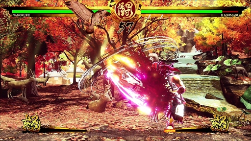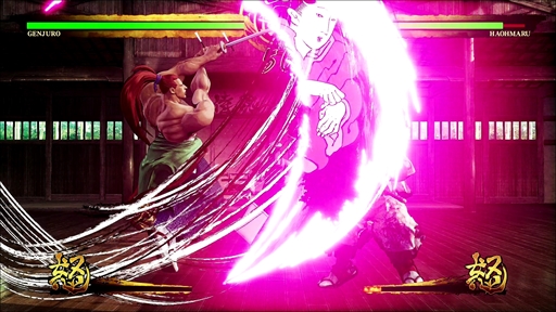 また,キャラクターごとにコマンド入力とボタンを組み合わせた必殺技も用意されており,飛び道具や切り返し,けん制など用途はさまざま。また,怒り頂点時にくり出せる武器飛ばし必殺技は,ヒット時に相手の武器を弾き飛ばしつつ,大ダメージを与える。