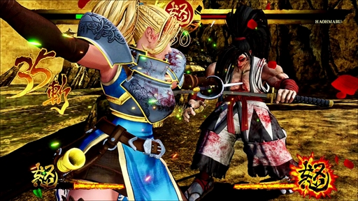 弾き返しのリターンが尋常ではないため,弾き返し不能技である必殺技でのけん制,下段斬り攻撃,中段の不意打ち,各種蹴りによる攻撃が立ち回りで重要な役割を担う。ただし,これらの細かいけん制は,差し返しの強斬り一発で体力差をひっくり返されてしまう可能性があるため,いずれにしろ安易に動くことができない。