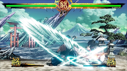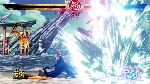 十兵衛の武器飛ばし必殺技である絶・水月刀は巨大な水柱を発生させる。発生は遅いが多段技のため削りダメージが高く,ガード中に動いた相手にもヒットする