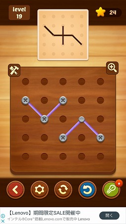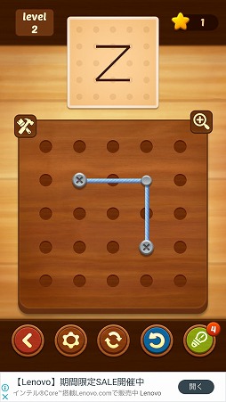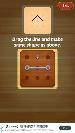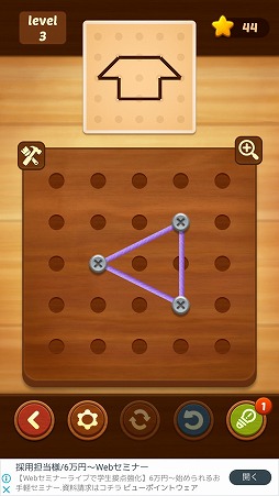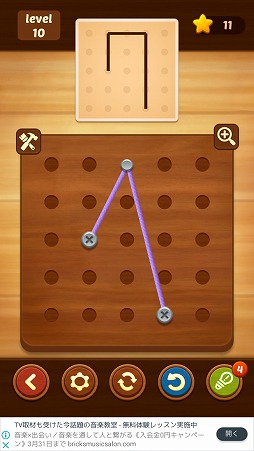 ステージ内には糸が張られており,これはスワイプである程度自由に動かせる。画面上部に示されている図と同じ形にすることがゲームの目的だ。
