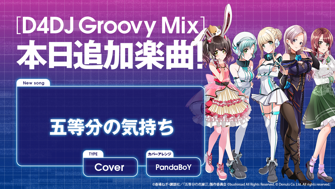 「D4DJ Groovy Mix」がTVアニメ「五等分の花嫁∬」とコラボ。カバー楽曲の“五等分の気持ち”を実装