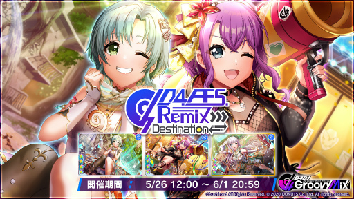株式会社ブシロード(本社:東京都中野区、代表取締役社長:橋本義賢、以下ブシロード)は、株式会社DONUTS(本社:東京都渋谷区、代表取締役:西村啓成)と共同開発のスマートフォン向けリズムゲーム「D4DJ Groovy Mix」(以下グルミク)にて、イベント&ガチャ「D4 FES.Remix -Destination-」を開催いたします。