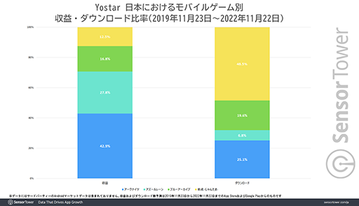 また,アプリ版雀魂は,2020年11月23日から2022年11月22日までの2年間,日本におけるソリティア/麻雀ジャンルの収益トップで,90万ドル以上の収益を上げているという。このほかにも,2022年7月から9月に日本における男女比はおよそ6:4,25歳未満のプレイヤーが33%と最も多く,若い世代に支持されていることが明らかにされている。詳しくはブログの記事を確認してほしい。