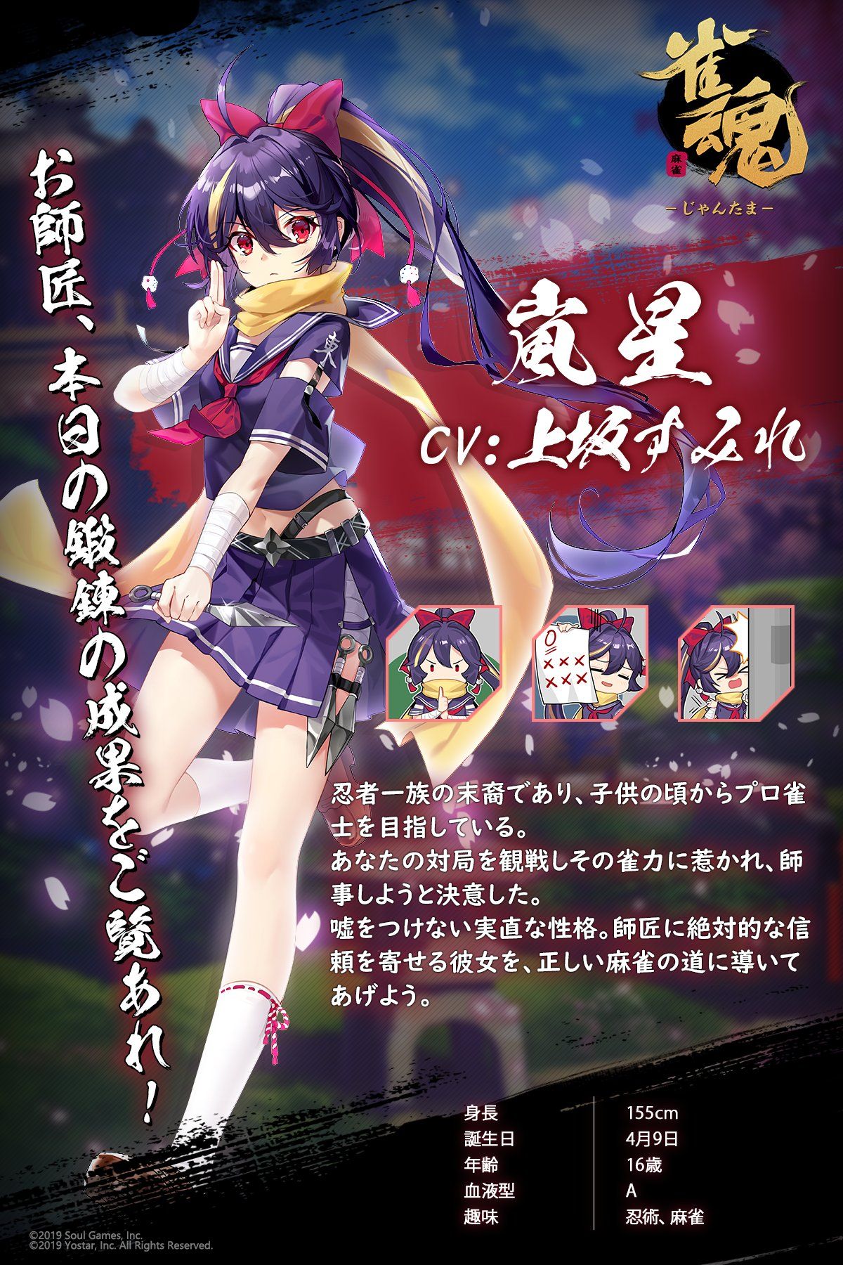 • 画像ギャラリー No.008 | 「雀魂」,イベント「究極奥義を修得せよ!!」を本日から開催。新雀士として嵐星(CV:上坂すみれ)とリン(CV:KENN)が登場