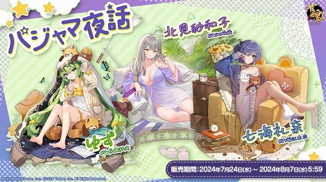 また,「小鳥遊雛田」「五十嵐陽菜」「撫子」の限定着せ替え「気ままな時間」が,期間限定で販売されているほか,「ゆず」「北見紗和子」「七海礼奈」の着せ替え「パジャマ夜話」も復刻販売されている。