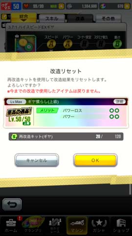 「パーツ改造」に「リセット」機能が追加!一つのパーツで様々な改造を試せるようになりました!