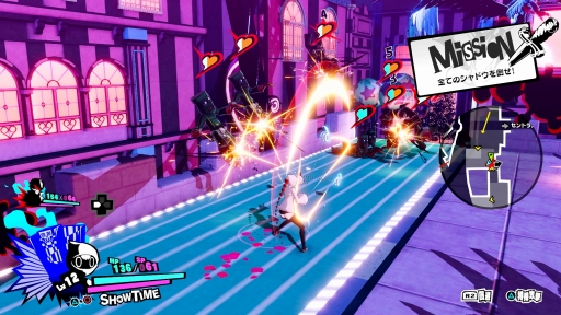 アクションRPGには珍しいスタイルともいえる,シンボルエンカウントスタイルが採用されているところも独特だ。ステージの形状やオブジェクトを利用したカバーアクションも健在で,不意打ちに成功すると有利な状況でバトルが始まる。筆者も試遊したステージで信号機の上に登り,真下にいるシャドウに不意打ちを決めて一網打尽にすることができた。この感覚も「P5」そのままだ。