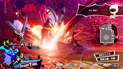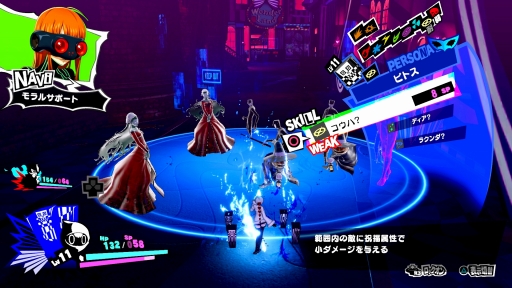 ペルソナはそれぞれさまざまな属性や効果を持つスキルを所持しており,敵のウィークポイントを突くと「1MORE」となって続けて行動できたり,状態異常にした敵に「TECHNICAL」の表示が出たスキルを使って大ダメージを与えたりできる。さらに敵への総攻撃やショウタイムといった大技もあり,このあたりの使用方法も「ペルソナ」シリーズそのもの。爽快アクションのさなかにアトラスのRPGならではの戦術性あるコマンドバトルが楽しめるというのは,なかなかの新感覚だ。