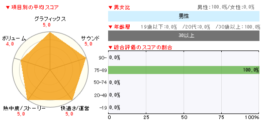 グラフィックス サウンド 快適さ/運営 熱中度/ストーリー ボリューム 5 5 5 5 4