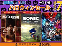 セガは本日(2024年10月23日),PlayStation Storeおよびニンテンドーeショップにて販売中の一部タイトルを対象とした「セガ ハロウィンセール」を開始した。期間は11月6日まで。本セールでは,「ソニックフロンティア デジタルデラックス」が50%オフになるなど,さまざまなタイトルを特別価格で販売中だ。