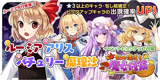 ・先行登場の「ルーミア」は、10月15日15:00から開催される「秋の儀式と魔女修業ピックアップ召喚」からも排出されます。
