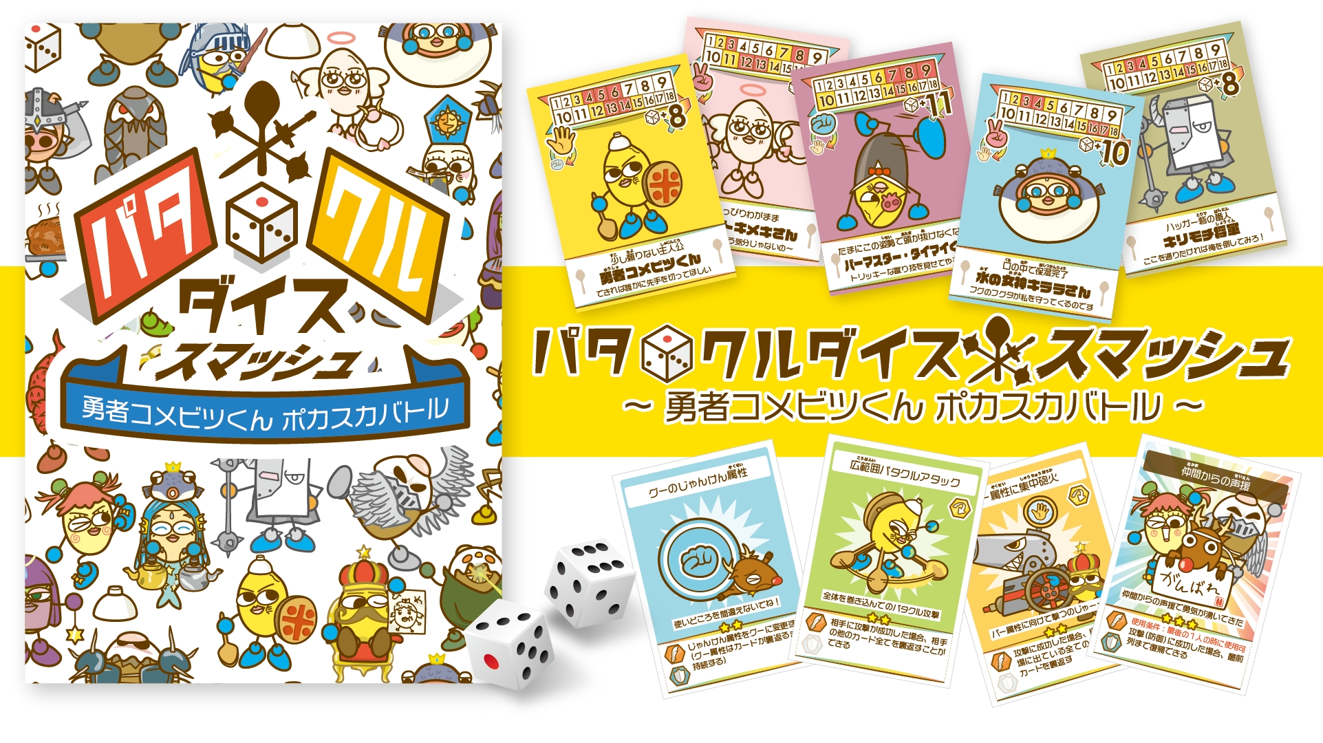 新作カードゲーム「パタクルダイススマッシュ〜 勇者コメビツくんポカスカバトル〜」がゲームマーケット2019春で先行発売