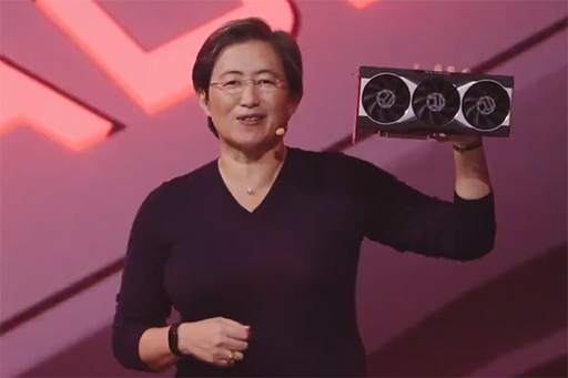 Radeon RX 6000」シリーズ搭載カードの実物と,性能の一端を披露した。