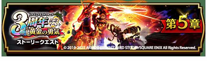 「ドラゴンクエストウォーク」,“3周年記念イベント 黄金の勇気”第5章を開催。特級職・大魔道士&じごくの大魔道士装備ふくびきの追加も