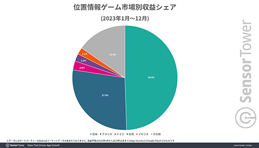 なお,2023年の位置情報ゲームの収益を各国市場別に見ると,日本は位置情報ゲームトップ5の合計収益が6億2000万ドルとなり,2位のアメリカの3億8000万ドルを大きく引き離している。また,韓国では1600万ドル足らず,中国では200万ドルにも届かずと,近隣諸国と比べても際立った結果になったという。