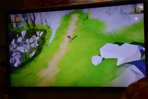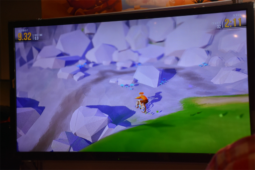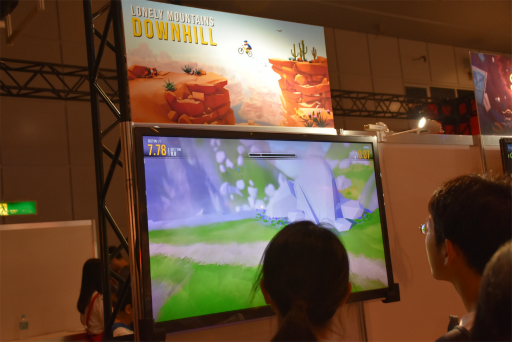 Megagon Industriesが開発し,Thunderful Gamesがパブリッシングする「Lonely Mountains: Downhill」は,その名の通り自転車競技のダウンヒルを題材としたアクションゲームだ。今回のBitSummitでは任天堂ブースにそのSwitch版が出展されていた。