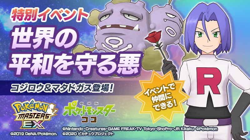 「ポケモンマスターズ EX」,劇場版コラボイベント第2弾で★3コジロウ&マタドガスが登場