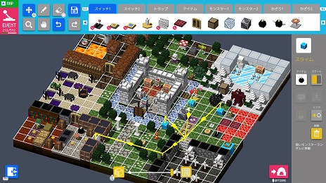 本作は,ブロック感覚でマップやイベントを配置していくだけで難しい知識なしにゲームを作れ,完成したダンジョンをインターネットでシェアできるというゲーム。チャレンジモードには120のパズルダンジョンがあらかじめ収録されており,それらを遊ぶだけでもボリューム満点だ。思いつくままに,自分だけのダンジョンを作り上げよう。