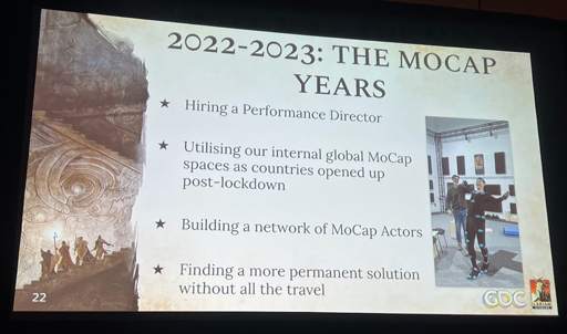 2021年3月にはイギリスにスタジオを構え,それを拠点にチームをグローバルに拡大して,13のタイムゾーンにまたがるチームに。これによって,2万2000以上のカスタムシネマチック・アニメーション,12万以上のボイス付きモーションキャプチャーと,ドラマ「ゲーム・オブ・スローンズ」全シリーズの2倍の長さを誇るシネマチックの制作を達成した。