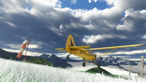一方,グライダーはドイツやフランスなどから多くのリクエストが寄せられていたという。タグと呼ばれる牽引用飛行機や,ウィンチを付けた車両に引っ張られる形で空を飛び,上空で気流をピックアップしたり,バラスト水を放出したりしながら高度を上げる。その際,ジミーという助っ人キャラクターが左翼側から走れる限り押してくれるという細かい描写も確認できた。エンジンのない機体であるため,旋回中は風の吹く音や機体の傾きなどを示すブザーが鳴っているだけ。どこか孤独な空の旅となる。