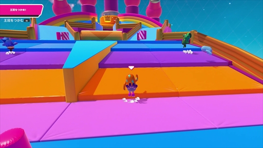 優勝の演出はシンプルだが,クラウンを手にしたうれしさはカクベツ。残念ながら画像は筆者のフォールガイではない……(涙)