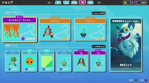 課金アイテムでもあるKUDOSがあれば,ショップでアイテムを購入できる