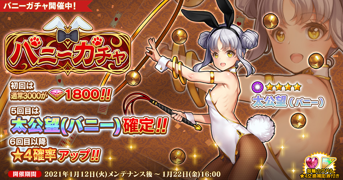 「英雄*戦姫WW」,“太公望(バニー)”が登場するバニーガチャを開催