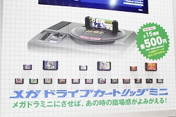 ![]() メガドライブカートリッジ ミニのサンプル。全15種類で,1回500円となる |