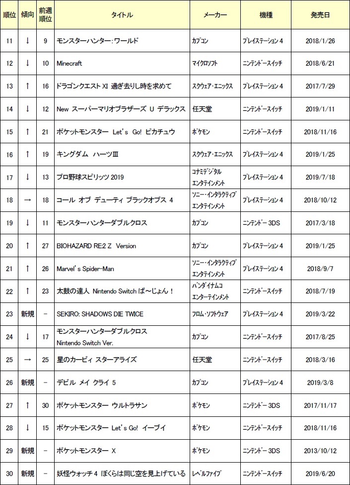 ゲオ,2019年9月4週目の中古ゲームソフト週間売上ランキングTOP30を公開