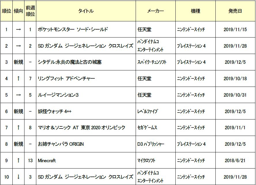 ゲオ,12月1週目の新品ゲームソフト週間売上ランキングTOP10を公開