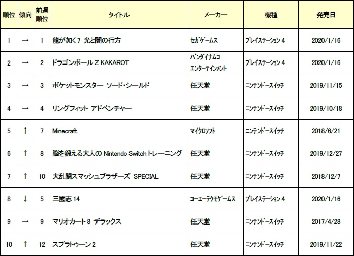 ゲオ,1月3週めの新品ゲームソフト週間売上ランキングTOP10を公開
