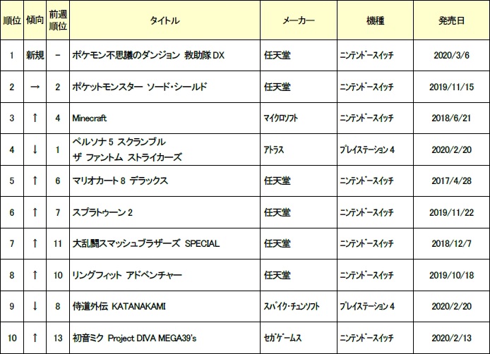 ゲオ,2020年3月1週目の新品ゲームソフト週間売上ランキングTOP10を公開