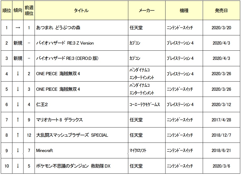 ゲオ,2020年3月5週目の新品ゲームソフト売上ランキングTOP10を公開