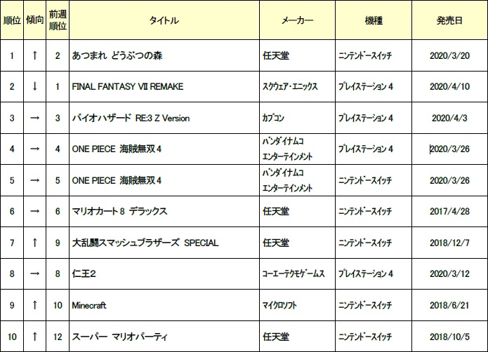 ゲオ,2020年4月2週目の新品ゲームソフト売上ランキングTOP10を公開