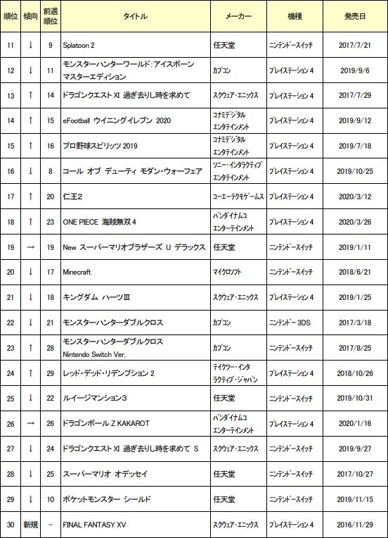ゲオ,4月2週目の中古ゲーム週間ランキングTOP30を公開