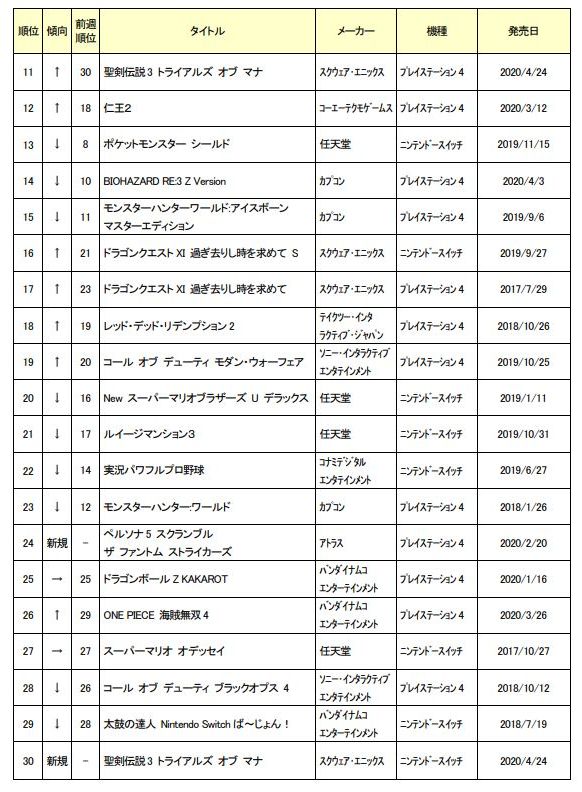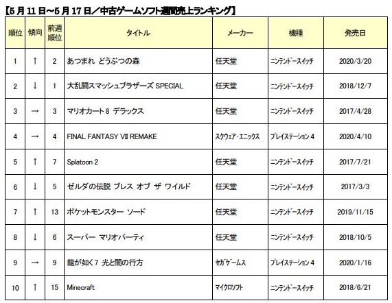 ゲオ,2020年5月2週目の中古ゲームソフト週間売上ランキングTOP30を公開