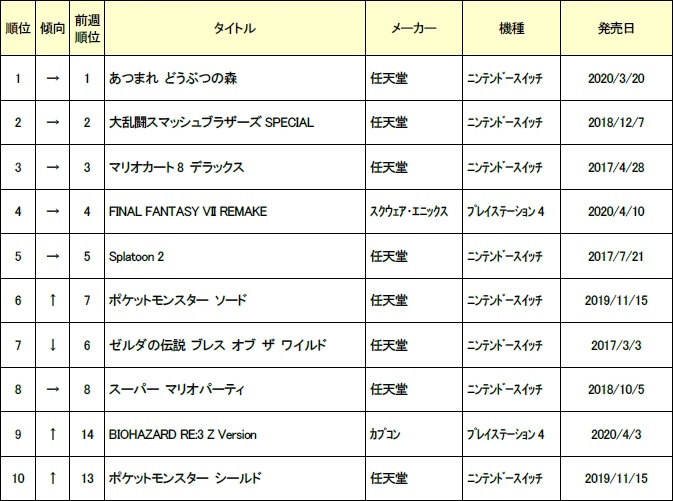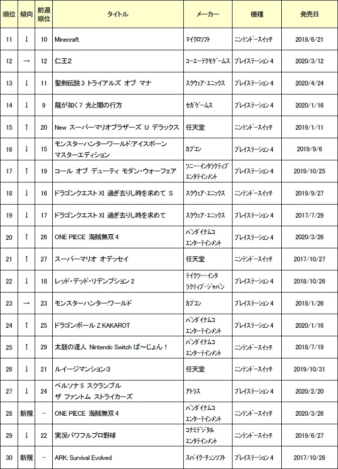 ゲオ,2020年5月3週目の中古ゲームソフト週間売上ランキングTOP30を公開