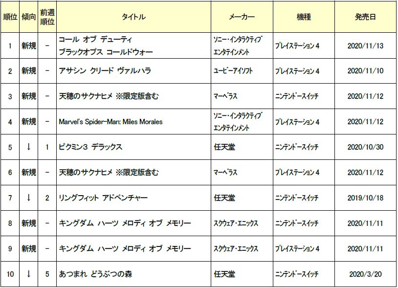 ゲオ,11月2週目の新品ゲームソフト週間売上ランキングTOP10を公開