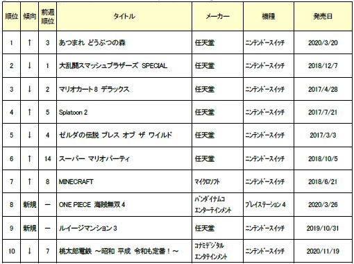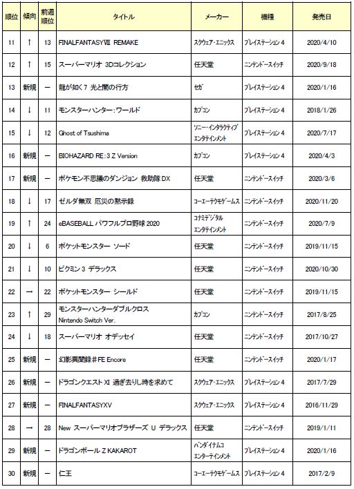 ゲオ,2020年12月3,4週目の中古ゲームソフト週間売上ランキングTOP30を公開