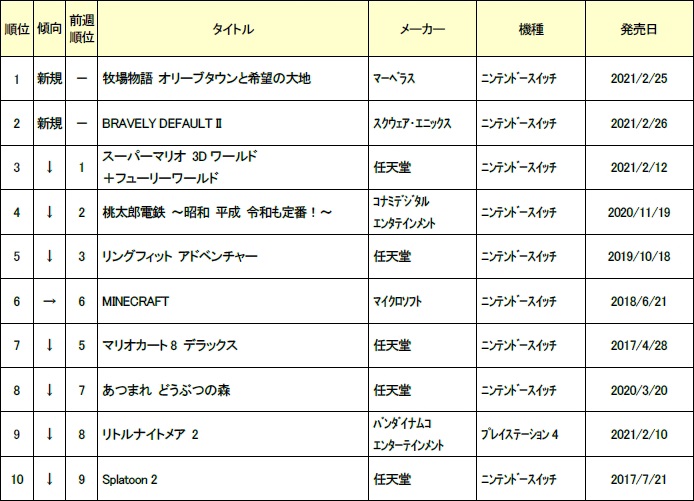 ゲオ,2021年2月4週目の新品ゲームソフト週間売上ランキングTOP10を公開