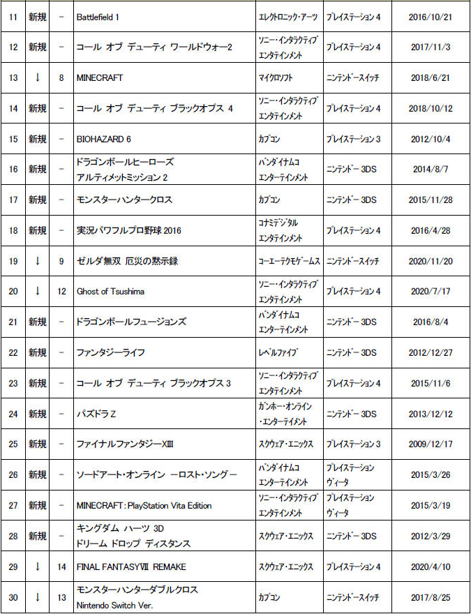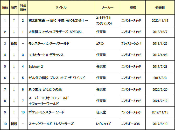 ゲオ,2021年2月4週目の中古ゲームソフト週間売上ランキングTOP30を公開