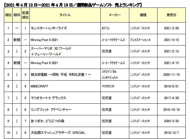 ゲオ,2021年4月2週目の新品ゲームソフト週間売上ランキング TOP10を公開