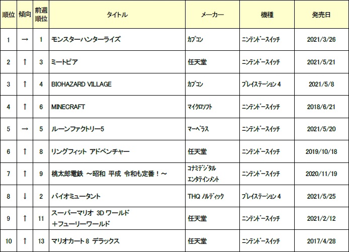 ゲオ,2021年5月5週目の新品ゲームソフト週間売上ランキングTOP10を発表