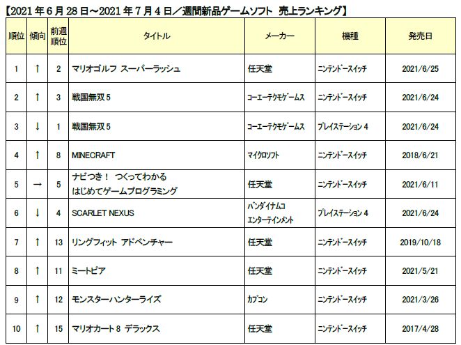 ゲオ,2021年6月4週目の新品ゲームソフト週間売上ランキングTOP10を発表
