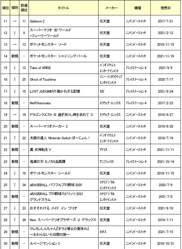 ゲオ,2021年12月1日から31日までの中古ソフト月間売上ランキング TOP30を公開