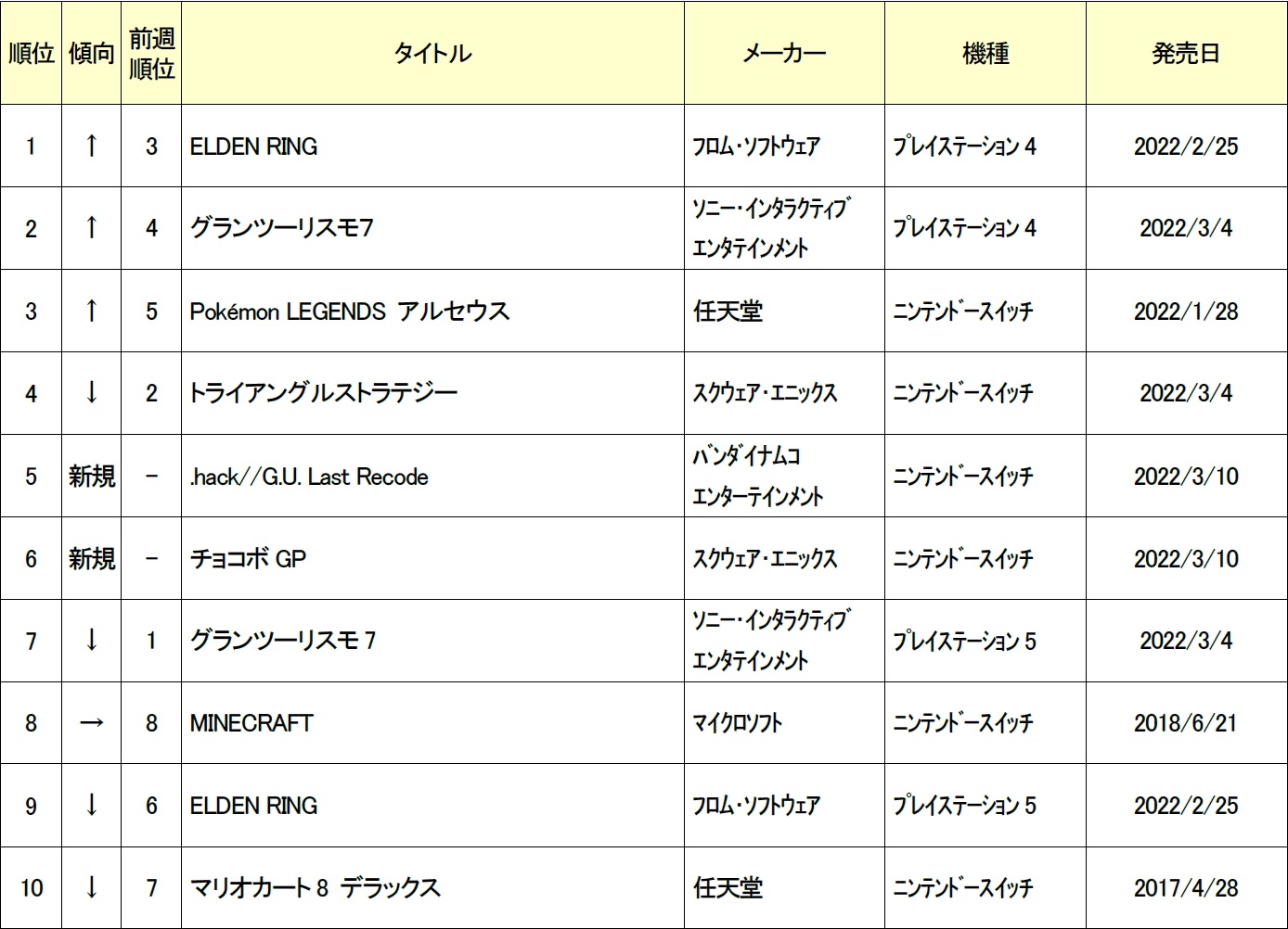 ゲオ,2022年3月7日〜3月13日の新品ゲームソフト週間売上ランキングTOP10を公開