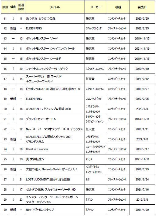 ゲオ,2022年3月の中古ゲームソフト月間売上ランキングTOP30を公開